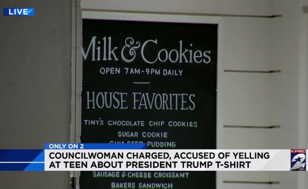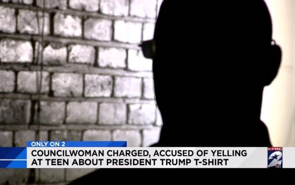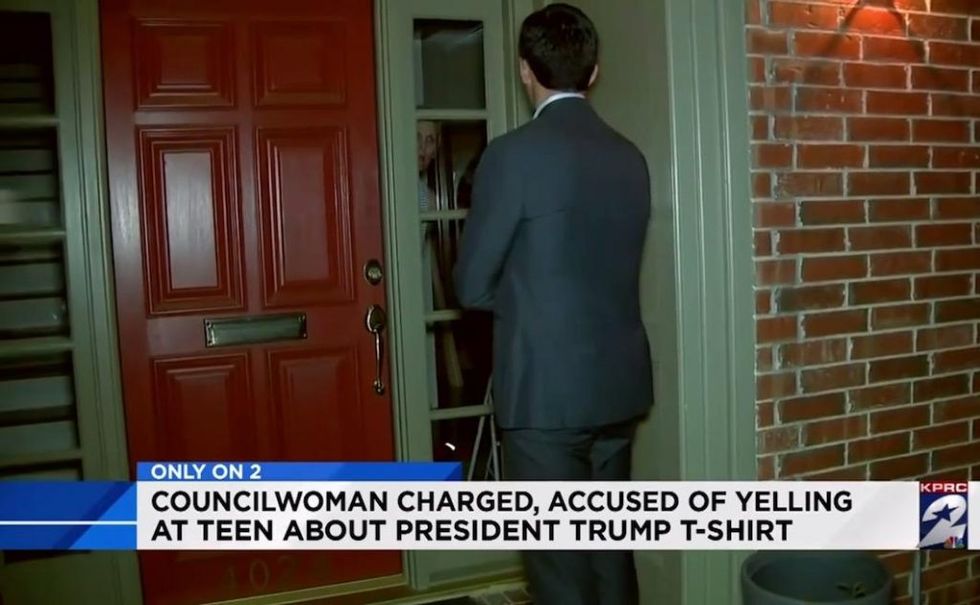 A Texas city councilwoman is accused of yelling obscenities a group of teenage girls on Saturday, apparently over one of them who was wearing a T-shirt supporting President Donald Trump. (Image source: KPRC-TV videos screenshot)