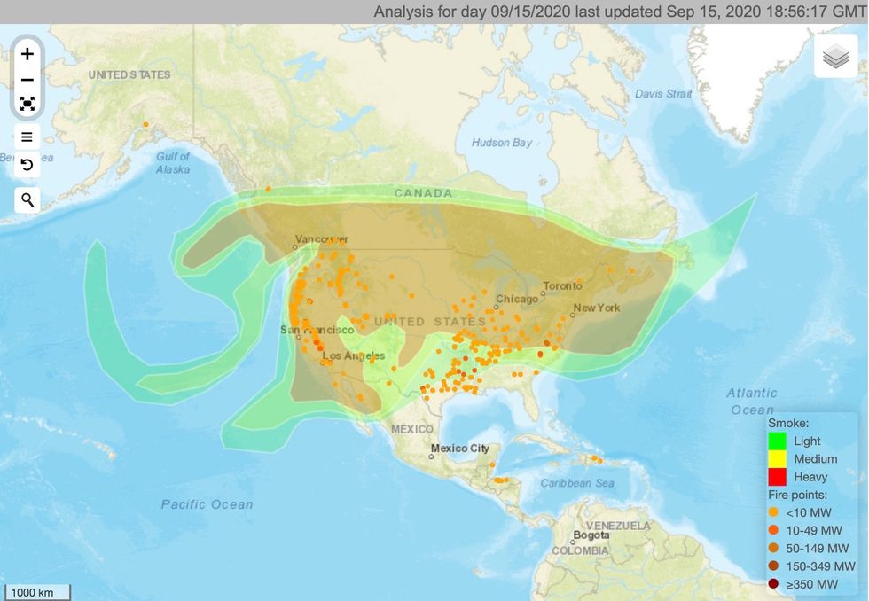 According to USA Today, Benz said "you can draw a line from California through St. Louis and on to Norfolk, Virginia — pretty much everyplace north of that line is looking at smoke-tainted skies."