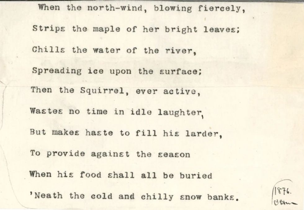 Even as his collection grew to encompass more exotic animals, Merriam never lost the sense of wonder instilled by his earliest encounters with creation. Looking through the Museum of Vertebrate Zoology's collection of Merriam's papers, archivist Greg Borman was surprised to discover an ode to the humble squirrel: