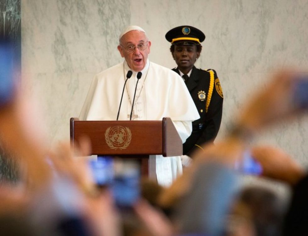 Pope Francis delivers remarks to UN staff members at United Nations headquarters Friday, Sept. 25, 2015. The Pope will address the UN General Assembly. (AP Photo/Kevin Hagen, Pool)