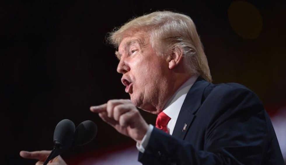 Republican presidential candidate Donald Trump speaks during the Republican National Convention on July 21, 2016, in Cleveland, Ohio. / AFP / Brendan Smialowski (Photo credit should read BRENDAN SMIALOWSKI/AFP/Getty Images)