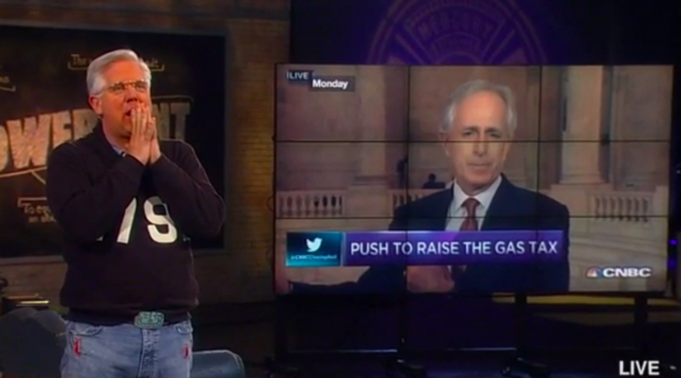 Glenn Beck was at his wits end with politicians on Tuesday after his friend Rep. Chris Stewart of Utah (R) voted to re-elect John Boehner as speaker of the House. When Beck heard that Sen. Bob Corker of Tennessee, who is also a Republican, recently suggested raising the federal gas tax now that oil prices have fallen, he couldn't take it anymore.