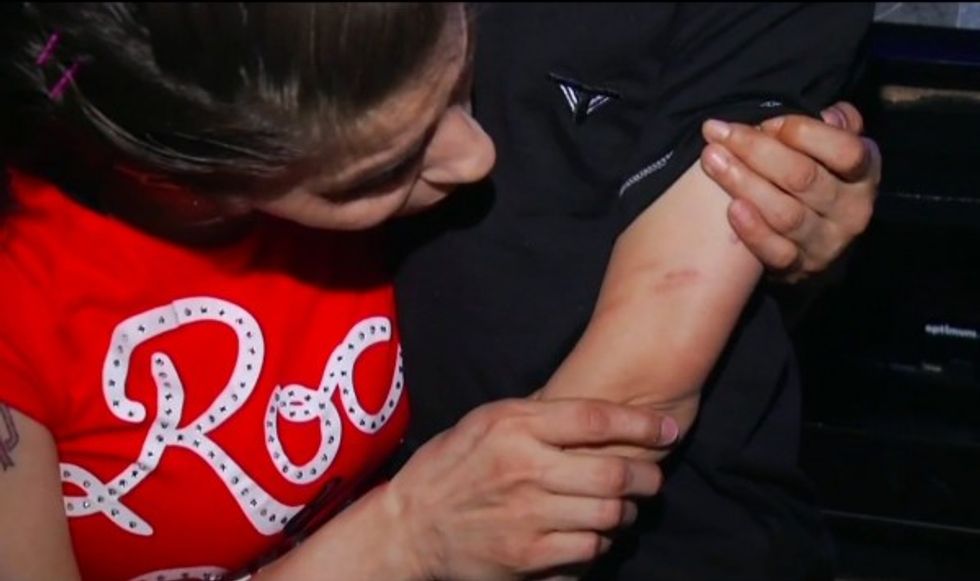 Katherine Santiago, the boy's mother, claimed on camera to Bronx News 12 that after Evans grabbed her son by the neck she "pinned him against the wall and lifted him into the air."
