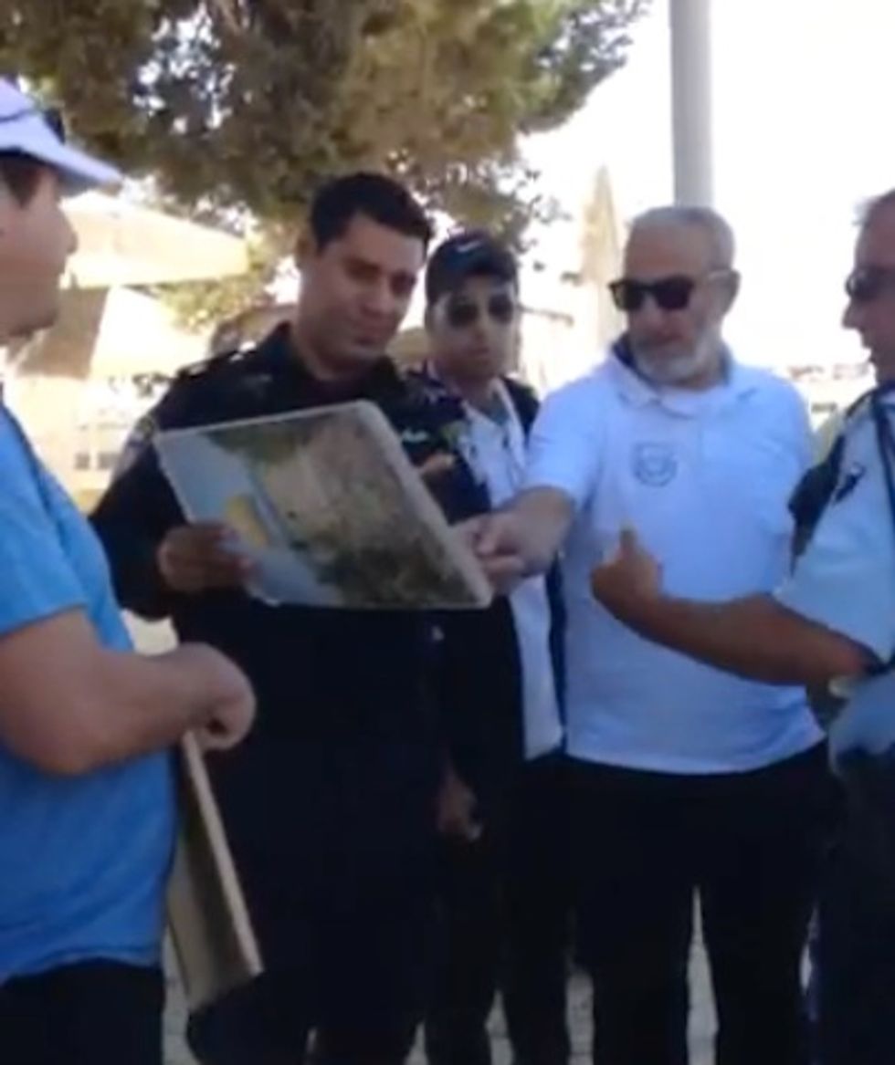 Other men wearing clothing identifying them as employees of the Islamic trust repeatedly interrupted the tour guide and tried to confiscate his maps, Kimball said. Police were called in again to break up the commotion instigated by some 15 to 20 men, who once again harassed the group.