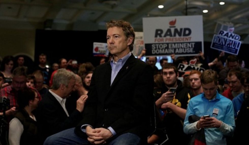 Senator Rand Paul, R-KY, speaks to the press at the Senate after speaking in the chamber at the US Capitol in Washington, DC on May 31, 2015. (Image source: Andrew Caballero-Reynolds/AFP/Getty Images)