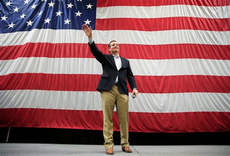 Republican presidential candidate, Sen. Ted Cruz, R-Texas, waves as he is introduced at a campaign rally for Sen. Mike Lee, R-Utah, Saturday, March 19, 2016, in Draper, Utah. (AP Photo/John Locher)