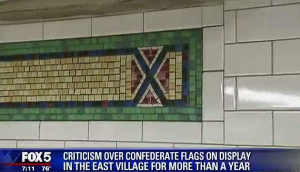 "These are not Confederate flags," the MTA told the station in a statement, "it is a design based on geometric forms that represent the 'Crossroads of the World' and to avoid absolutely any confusion we will modify them to make that absolutely crystal clear."