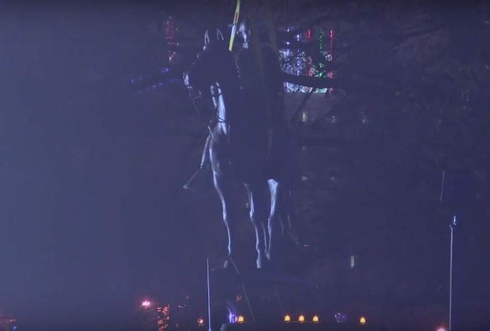 And when the Forrest statue was placed on a truck just after 9 p.m., the crowd chanted "the people united will never be defeated," the Commercial Appeal reported.
