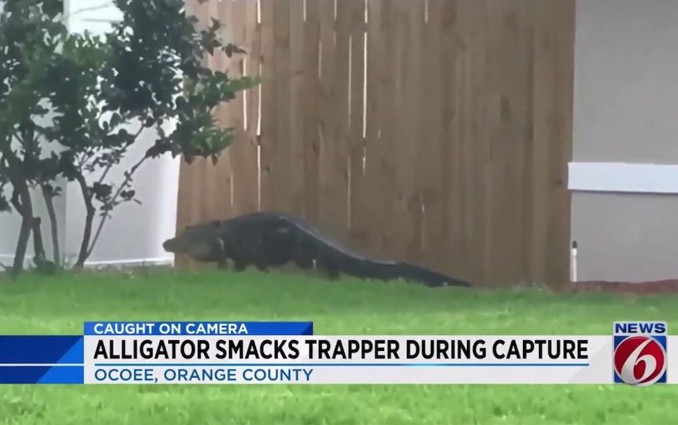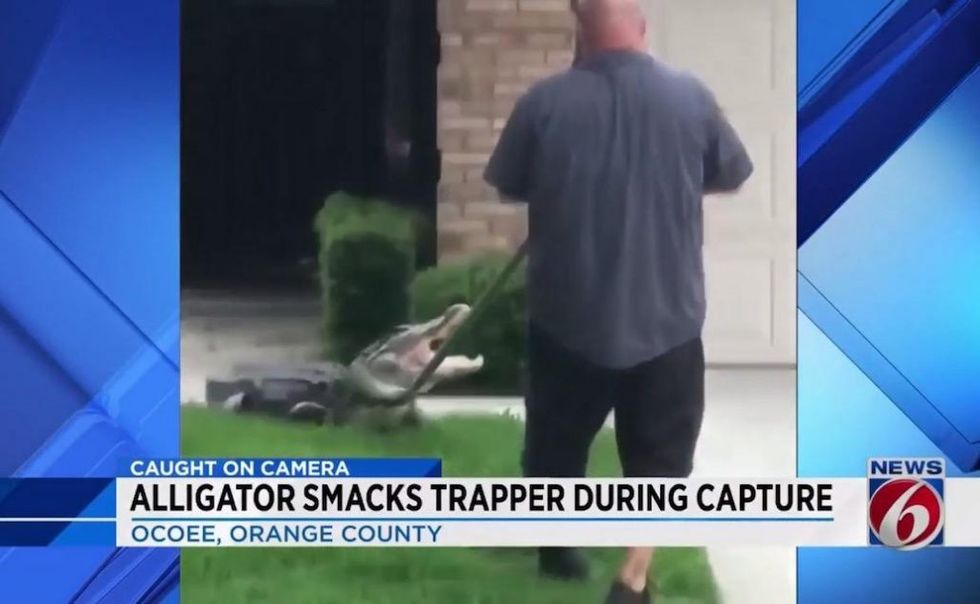 In fact, the alligator's wicked head-butt (or jaw-butt, if you will) left the wildlife trapper knocked out cold, WKMG said. And it was all captured on cellphone video.