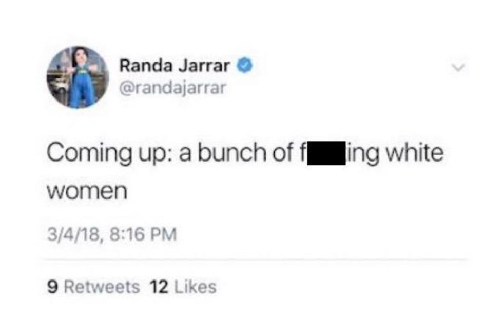 Jarrar noted in another tweet: “Coming up: a bunch of f***ing white women,” the Daily Wire noted.