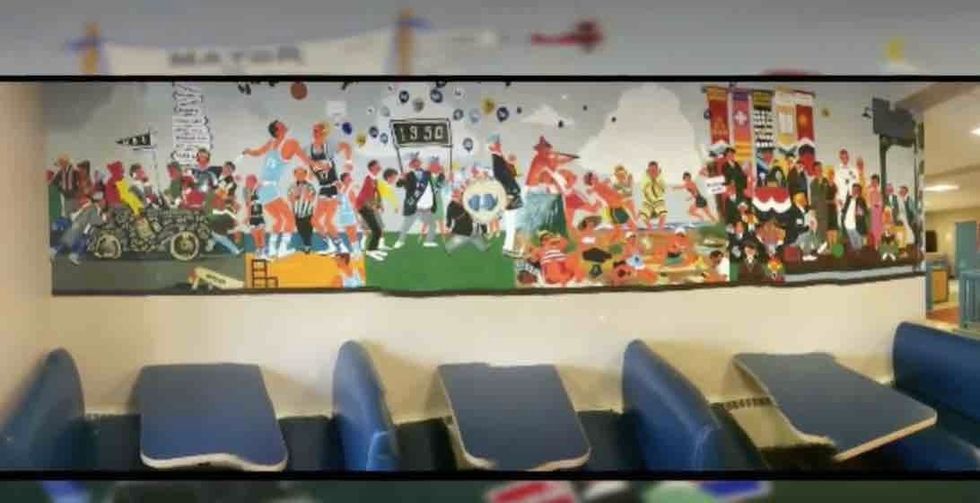 "I have received complaints about the murals that [they] portray a very homogeneous population ... the persons painted and depicted on the wall are predominantly white, and that does not represent who our institution is today," Collins told WJAR-TV. "Some of our students have even shared with us they didn't feel comfortable sitting in that space."