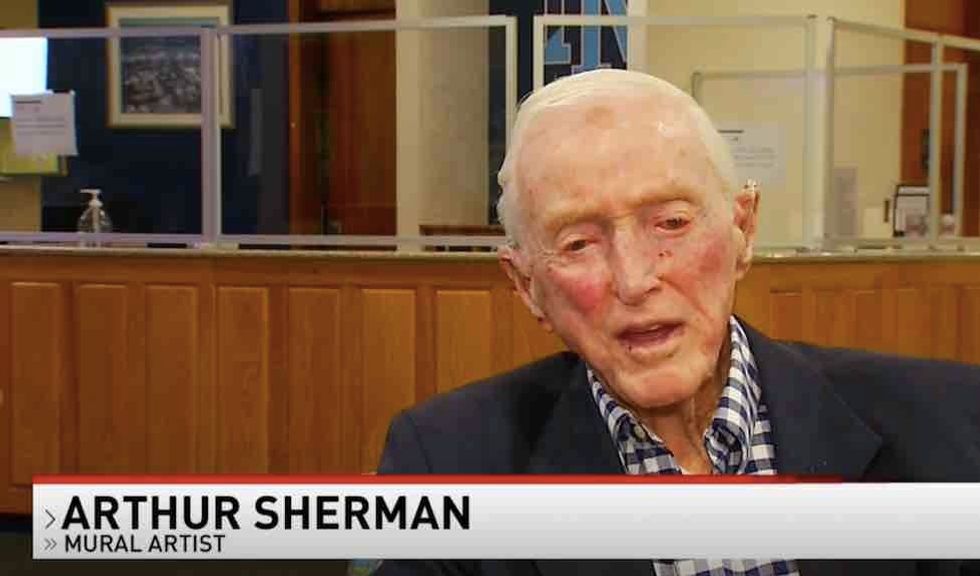 Arthur "Art" Sherman was a decorated veteran and member of the class of 1950, and he was asked to paint murals for new student union, WJAR said.