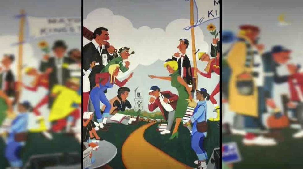 The murals depict returning servicemen, a class reunion, a URI commencement, a beach scene, and students piled into a car donned in letter sweaters, WJAR said.
