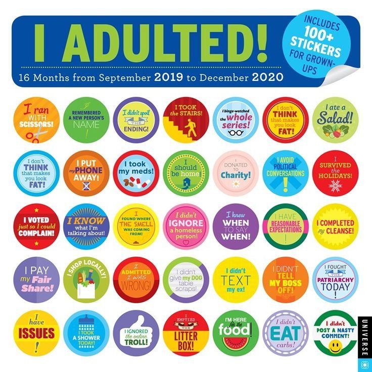 The 16-month wall calendar comes with a load of stickers to use as a reward every time you do something that, well, an adult would do.