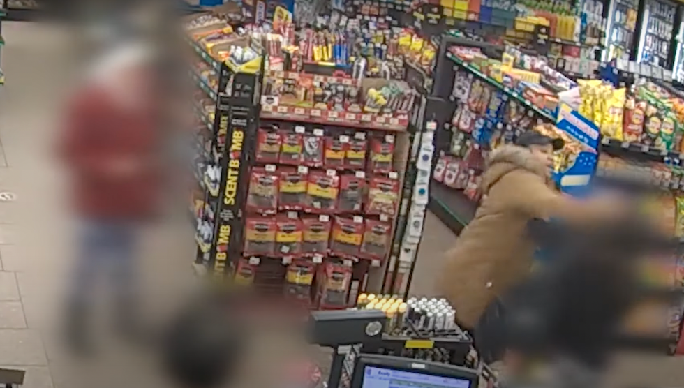 The suspect then walked over to the little girl, grabbed her hand, and appeared to begin to the leave the store — but she made a detour over to the victim she had just knocked to the floor and physically attacked her again.