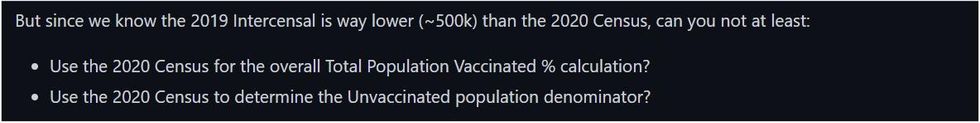 They are doing this through two basic errors. First, they appear to be using outdated population estimates that grossly undercount the actual number of unvaccinated persons in the United States. This leads to artificially inflated estimates of COVID-19 case rates among the ever-shrinking unvaccinated population.