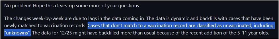 ● Yes, even “unknowns” are lumped into the unvaccinated pool.
