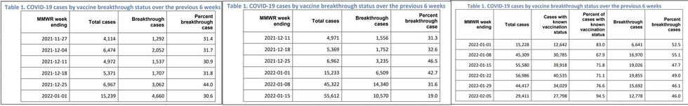 ● Feb. 10 Report: 52.5% of cases were vaccinated persons.