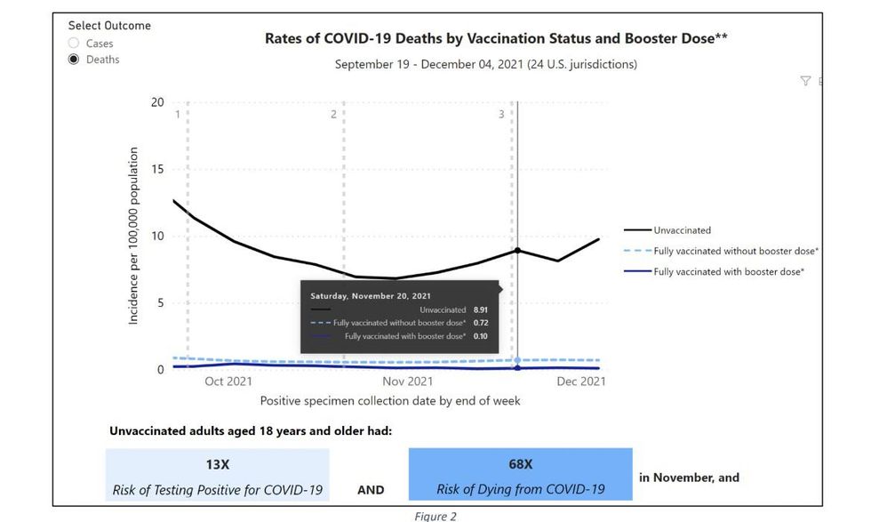 There is one huge problem with these claims: They are not true. Not only are they not true, but they are wildly out of sync with what we know about the efficacy of the vaccine in other countries, such as England, Scotland, and Denmark, where the difference between mortality and hospitalization rates for the unvaccinated and the boosted is in the single digits.