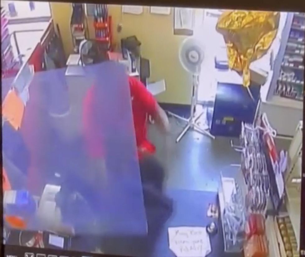 The clerk quickly responds by beating back the man with her hands, the station said, adding that police said the man was trying to steal cash from the register.