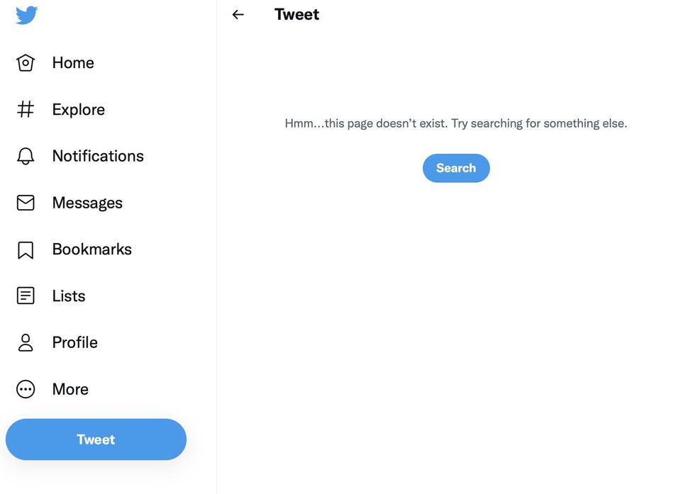 But the resulting message after clicking on the displayed tweet indicates the "page doesn't exist."