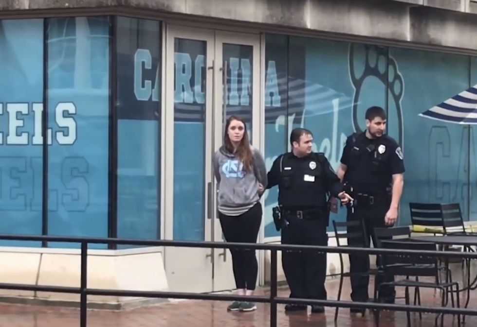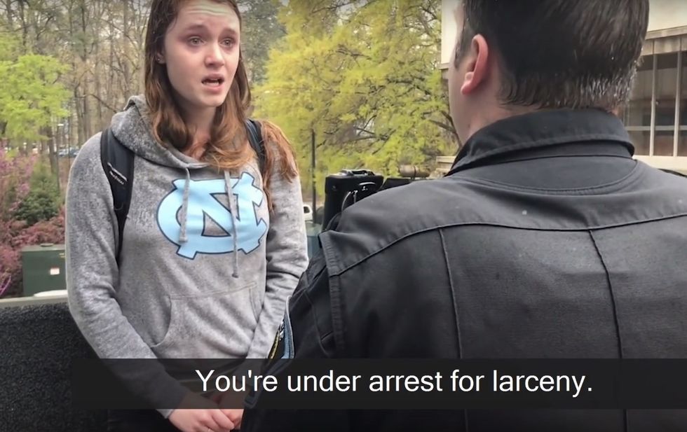 Just a few days after a woman outside of the University of North Carolina at Chapel Hill went berserk and attacked a young male pro-life intern, yet another pro-abortion foot soldier at the campus went on a mission — and paid for her actions with a tearful arrest caught on camera.