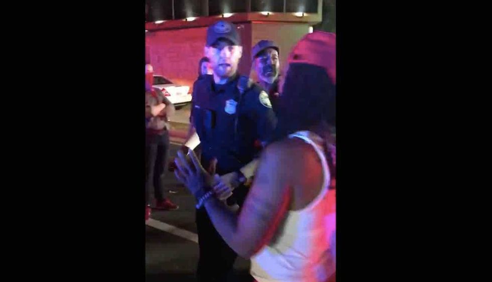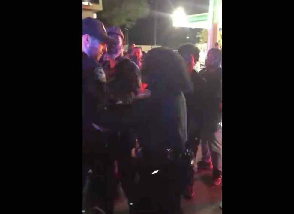 The final clip below shows a black male shoving a black police officer — after which someone notes, "He pushed a cop and got away with it." (Content warning: Language):