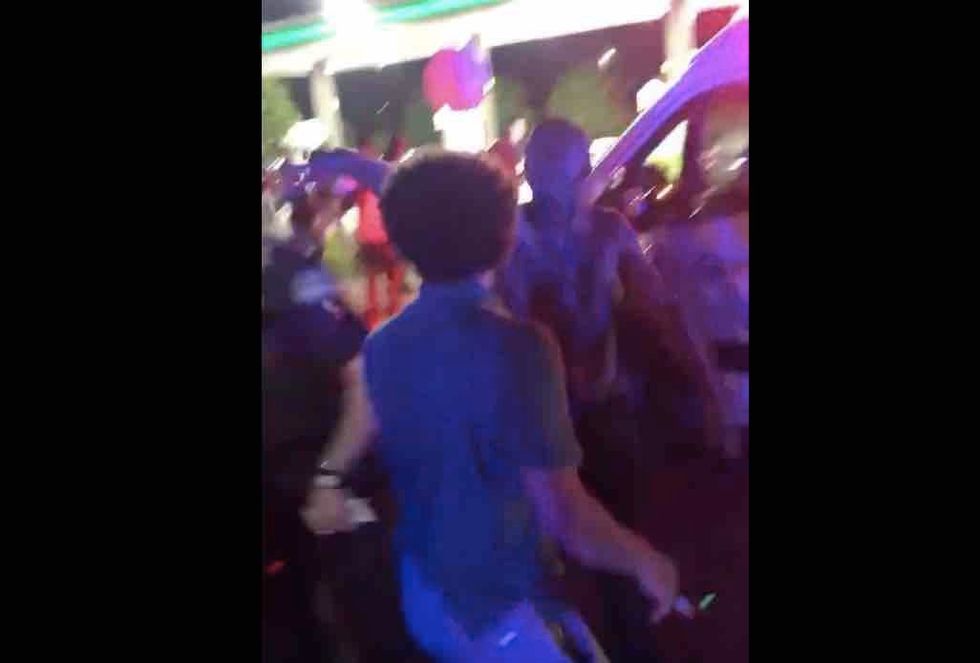 Others in the crowd appeared to try to help the officer, with some yelling variations of "let him get in the car!"