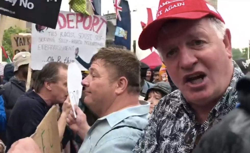A longer video of the incident shows the Trump supporter debating with protesters while wearing a red "Make America Great Again" hat — the symbol of Trump's 2016 campaign that's become a lightning rod for a growing number of those on the left who say the MAGA hat is synonymous with racism, bigotry, and hatred.