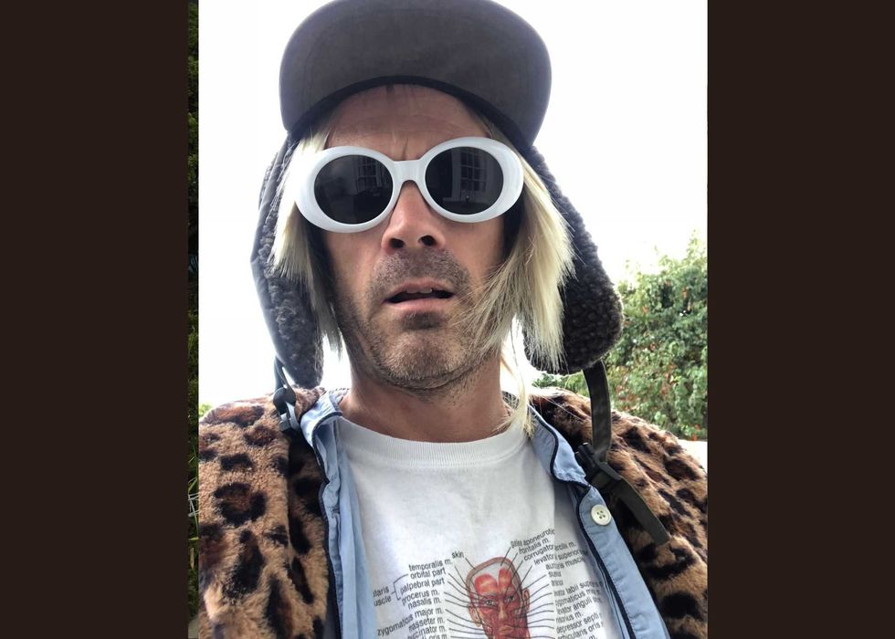 Not a huge "grunge" fan, but the same thinking guided my choice to be Nirvana frontman Kurt Cobain. In this case, it helped that I, too, have fair skin and hair. Also this particular image is well-known enough that you can type in "Kurt Cobain sunglasses," for example, and the internet knows exactly what you're talking about.