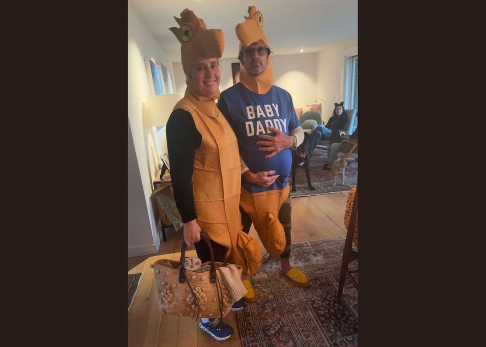 Some people say my wife's clenched fist and rigid posture is a sign of distress; I just a see a woman grateful to submit to her husband's God-given role as Halloween creative director: