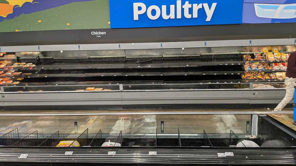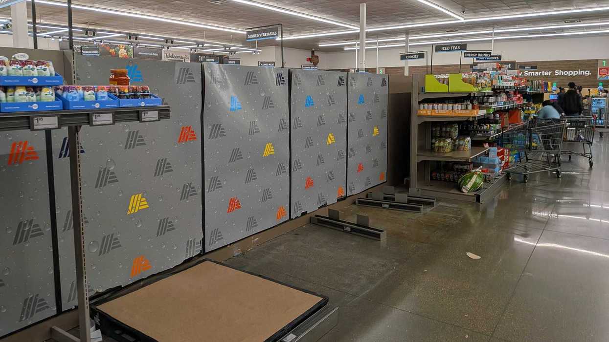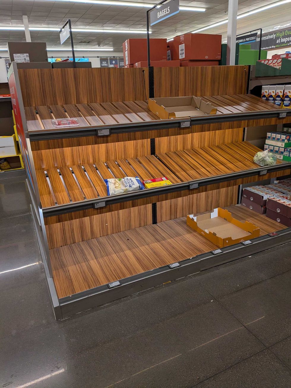 The barren shelves are reminiscent of past disasters and mass-buying events.