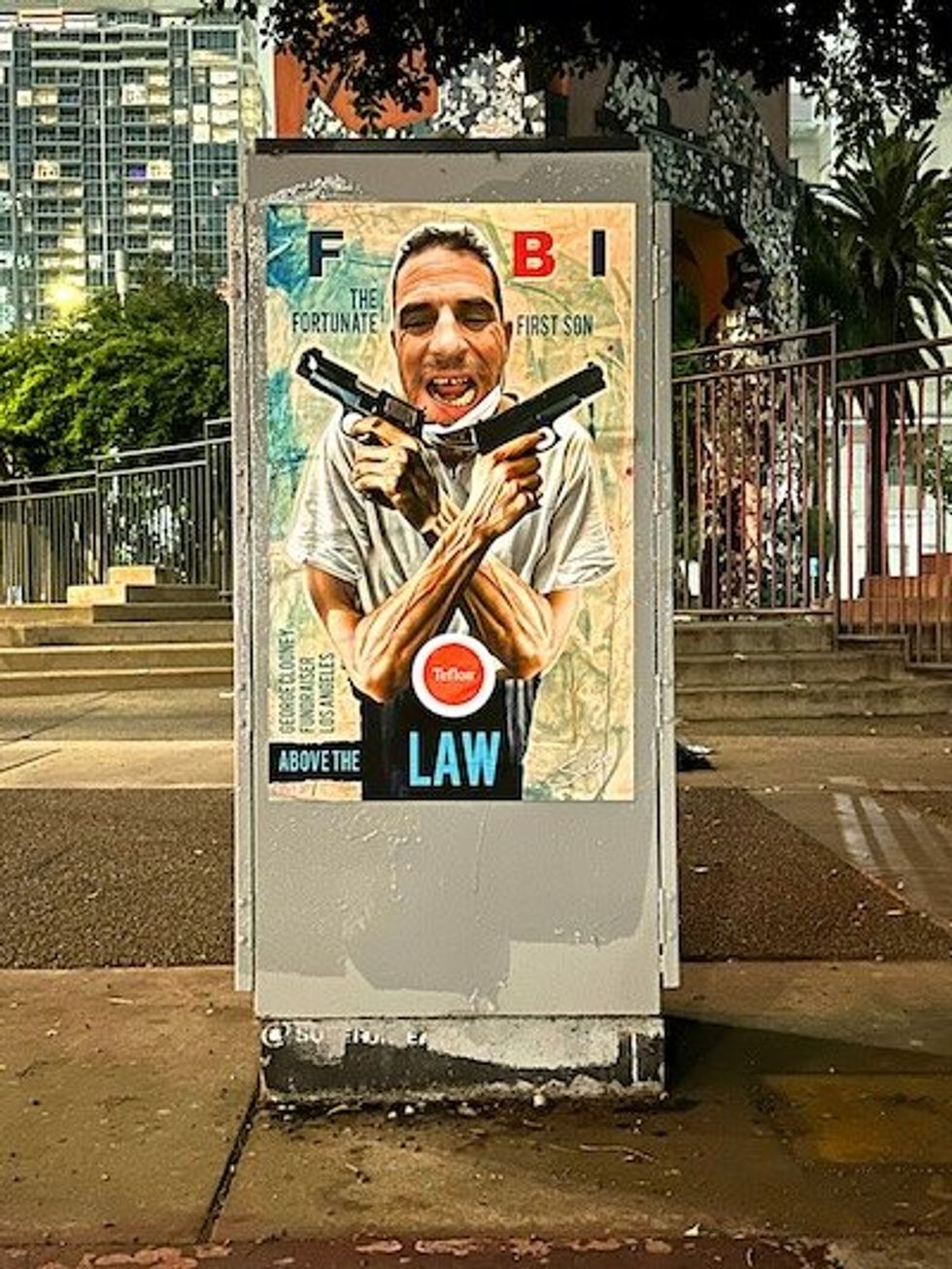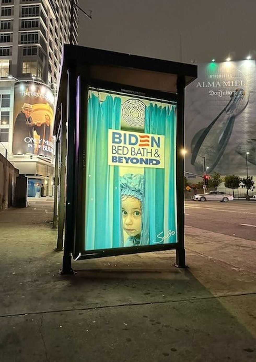 The street artist gives Align a look at his provocative mock ads ripping the Biden family and George Clooney.