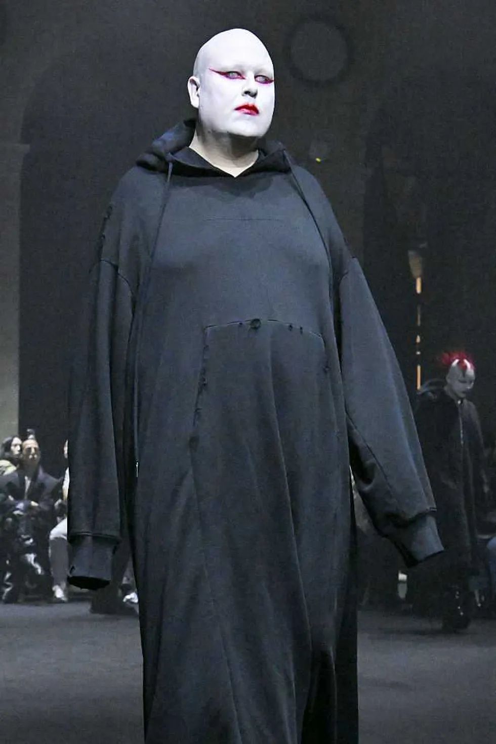 He was one of the “models” chosen to don a look from the label’s Fall 2026 “Ready-to-Wear” collection — a hooded black floor-length robe resembling that of a satanic priest.