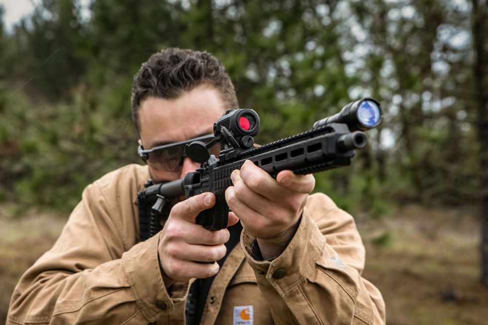 Featuring M-LOK attachment technology with the Daniel Defense MFR 15.0 rail, this made-in-the-USA AR-15-style firearm has attachment points in seven positions and an uninterrupted 1913 Picatinny rail on the top, maximizing functionality. It’s also equipped with a DD improved flash suppressor, built around a cold hammer-forged 16-inch barrel to reduce that flash signature.