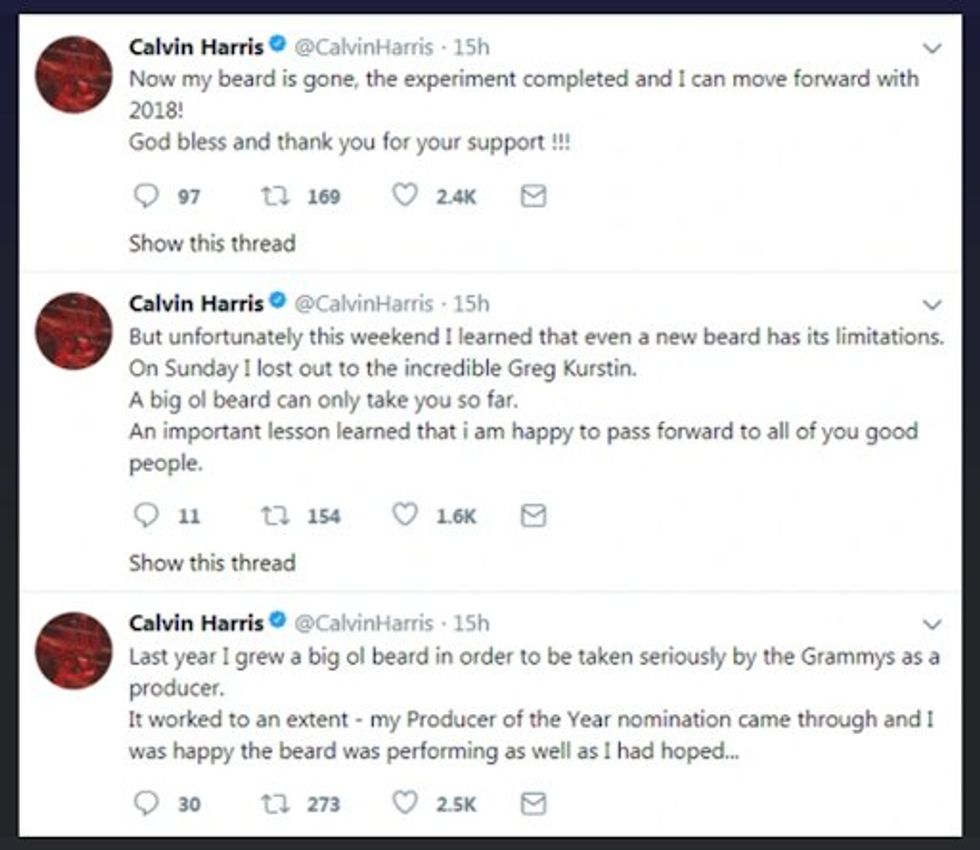 Harris tried to put a stop to the gossip with a gentlemanly tweet: "The only truth here is that a relationship came to an end & what remains is a huge amount of love and respect."