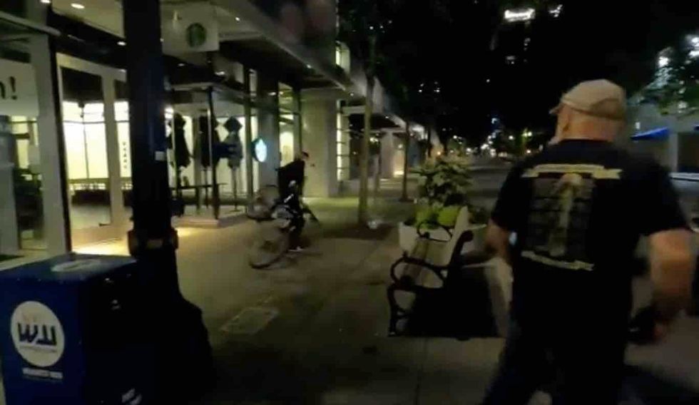 Photojournalist Alex Milan Tracy posted video of the attack on Twitter early Monday morning and wrote that the victim reportedly said "f*** black lives" as he was surrounded behind the Justice Center, where rioters have been attacking police and destroying property seemingly on a nightly basis for some time.