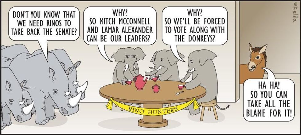 It’s deja vu all over again. I have more gray hair and a few more kids, but it’s like nothing has changed since the last big GOP win 12 years ago. My wife made this political cartoon for a column of mine during the “Tea Party wave” election of 2010 to accentuate the point that there is no purpose in winning an election to empower leaders who believe in handing the ball of power to the defeated team on every issue that matters. Here we are 12 years later, and McConnell is still at the helm of the party, even as he stands against conservatives on every issue that matters.