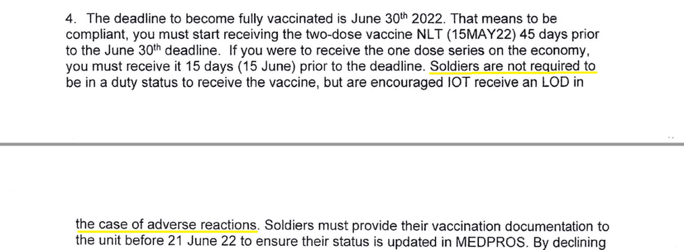 Also, how can the Texas Guard leadership blow off concerns about medical problems, when in a Feb. 1 letter they admit the problem of adverse events? In that letter, they encourage soldiers to get the shots in the military (as opposed to a Walgreens) because then they will be eligible for medical compensation for line-of-duty injury in case of adverse events.