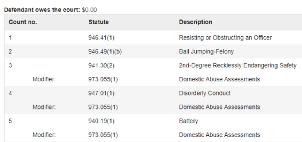 According to court documents, Brooks was charged in Milwaukee on Nov. 5 for resisting an officer, felony bail-jumping, second degree recklessly endangering safety with domestic abuse assessments, and disorderly conduct and battery.