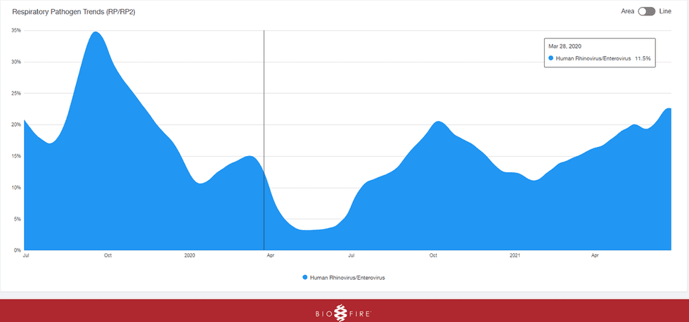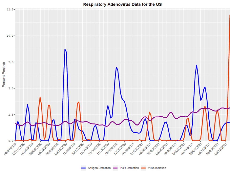 The same trend was observed for adenoviruses, which seemed to remain pretty level throughout the pandemic: