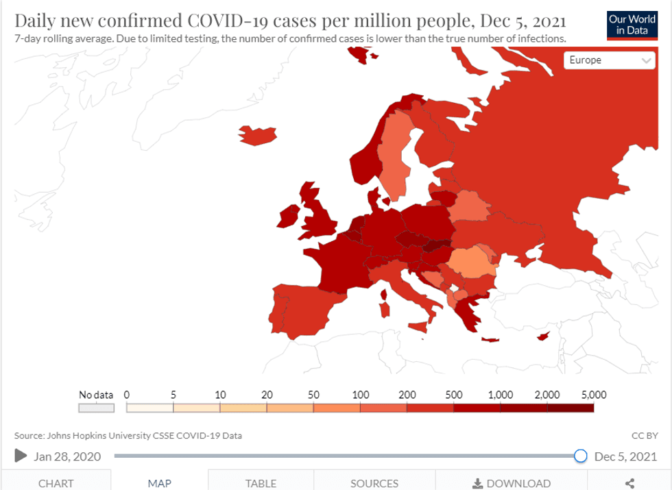 It’s not just Slovakia. Wherever you turn in Europe, both masks and vaccine mandates have failed miserably, and the spread is now worse than ever. Belgium is now six weeks into the new mask mandate, and it has more cases than ever before, even though the Belgians already suffered one of the deadliest waves in all of Europe. Oh, and 87.4% of adults are vaccinated.