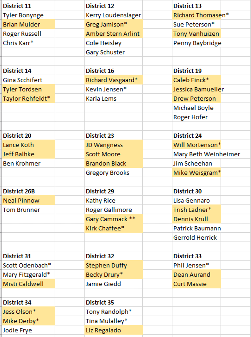 Here is a list of targeted races based on a paper circulated by Schoenbeck referenced in the Argus Leader: