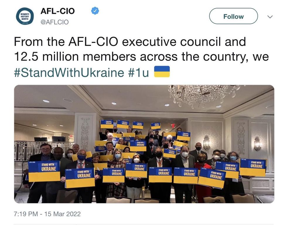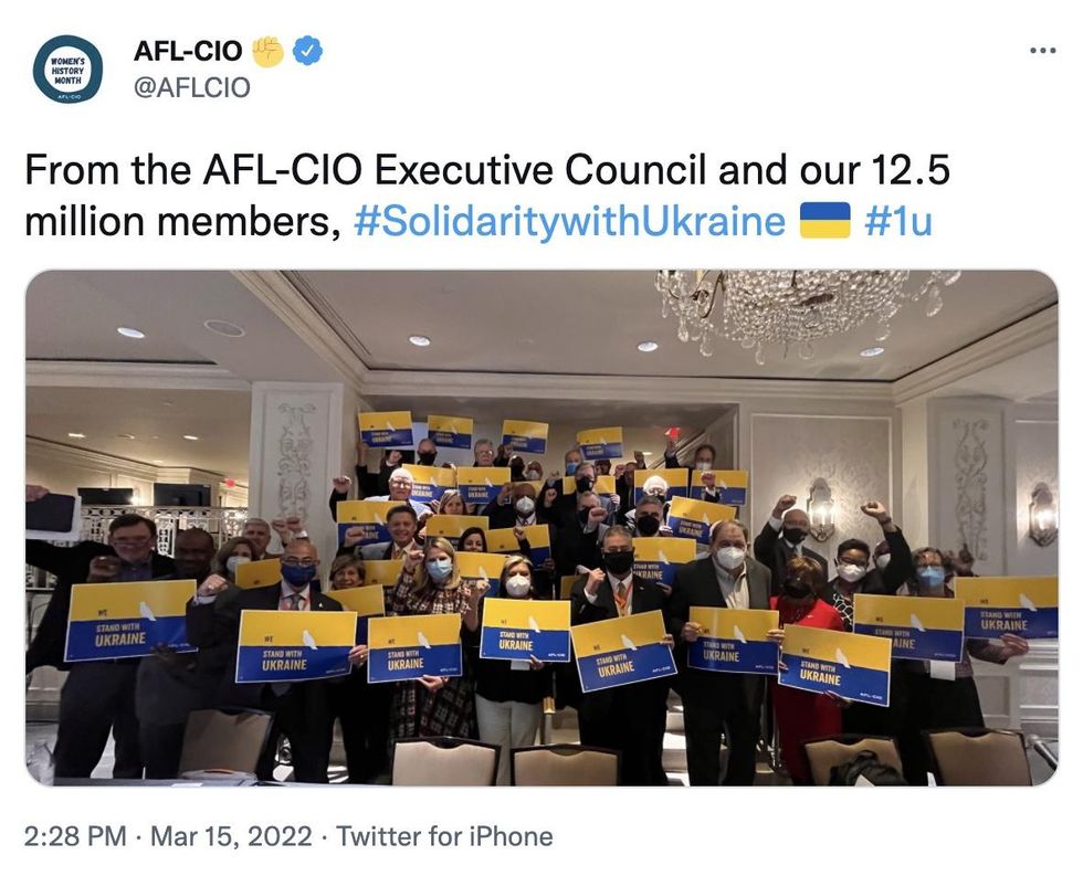 The AFL-CIO wants the world to know that the unions really, truly stand with the people of Ukraine.