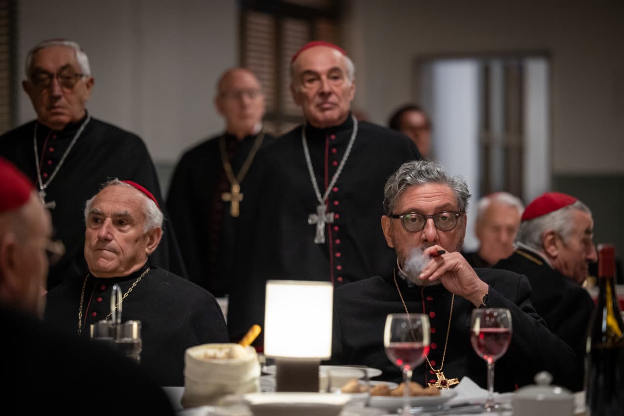 They don’t even need to be conducting exorcisms or fighting Satan! To put it plainly, even the charisma and charm of a young, high-top-sneakered evangelist on a megachurch stage is no match for the flex of old cardinals smoking cigarettes on the street. That’s why movie directors use this image over and over again.
