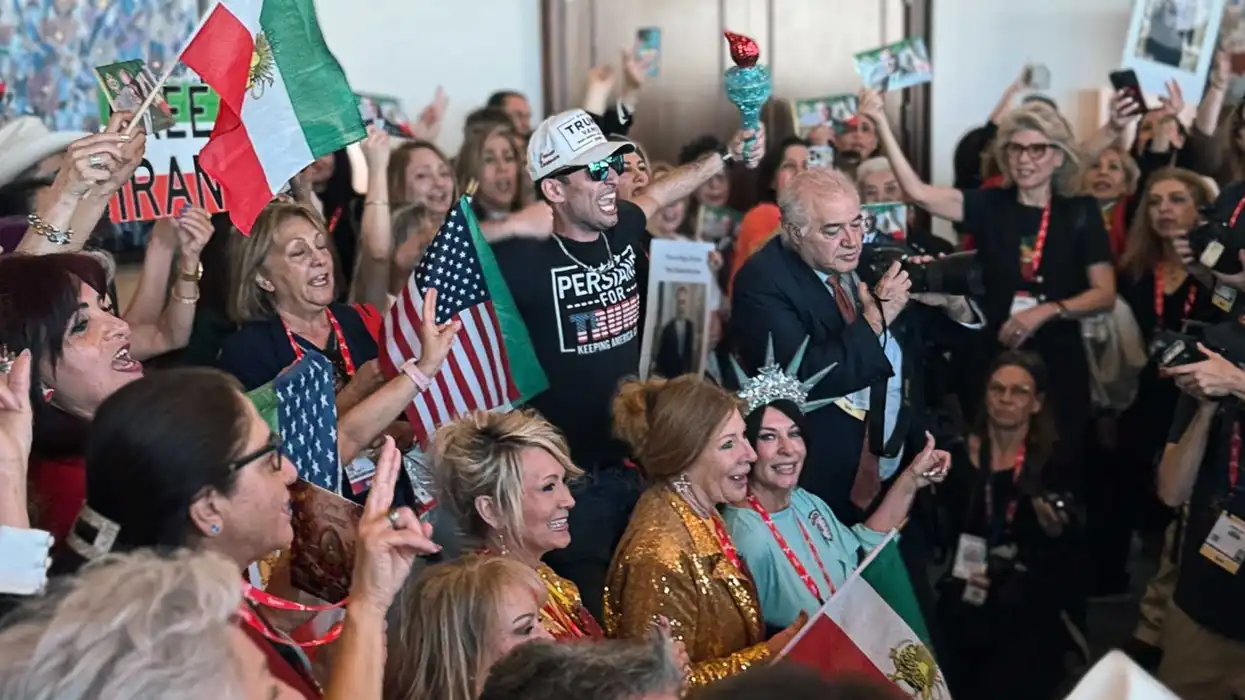 After they spoke, I heard loud shouting in the hallway. I grabbed my camera and shuffled off, along with most of the press corps, desperate for action. It was an extremely loud group of Persians, who, completely spontaneously and definitely not in some astroturfed way, began shouting slogans in Farsi while waving Iranian flags for the press. They held aloft signs saying MAKE IRAN GREAT AGAIN. They held pictures of Reza Pahlavi, the son of the former shah, wanting him to sweep back into power. One wonders why the fail-son of an autocrat from the 1970s who has been living in Maryland for the last 30 years would be the ideal leader for Iran in 2026. I have my doubts. When I later asked a young Iranian guy from Glendale, California, with tattoos and a MIGA hat if he would be returning to Iran, he seemed legitimately confused.