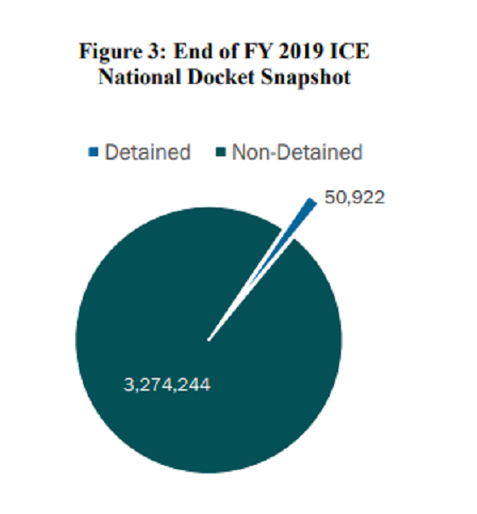 ICE’s annual enforcement report reveals that at the end of fiscal year 2019, there were 3,274,244 foreign nationals in the national docket of immigration proceedings who are officially under the supervision of ICE, but are not detained. That is an increase of 800,000 illegal aliens in just two years, and most of them committed other crimes while here.