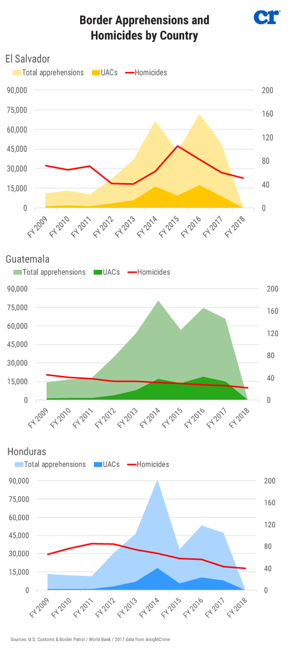 If it weren’t so tragic, the irony of this invasion would be funny. We are told that these people are fleeing violence. In reality, violence in Central America has plummeted, coinciding with the skyrocketing of migration. There are now places in Maryland, such as Baltimore, that have higher homicide rates than Central America! Baltimore’s homicide rate in 2018 was 56 per 100,000 people. That tops the 51 per 100,000 rate in El Salvador and dwarfs the rates of 40 and 22.4 in Honduras and Guatemala respectively. And the homicide rates are plummeting in those countries while migration skyrockets. The homicide rates have been cut in half in all three countries since the migration began!