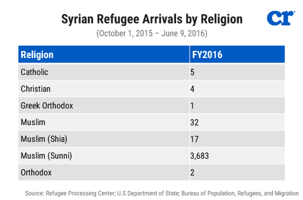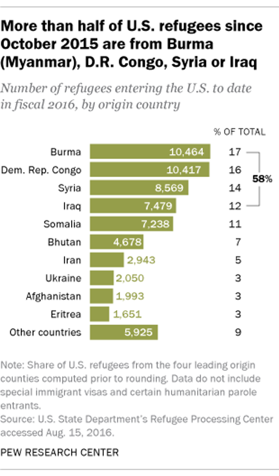 According to a Pew analysis released today, 46 percent of all refugees admitted to this country for FY 2016 are Muslim. Using data from the State Department’s Refugee Processing Center, Pew found that 28,957 Muslims were admitted as refugees for the first ten months of this fiscal year, slightly more than the 27,556 Christians.