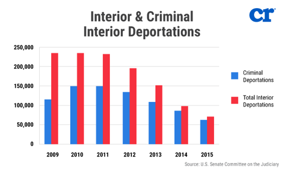 Despite the fact ICE’s budget for removals has increased from $2.6 billion in 2011 to $3.4 billion and they are privy to more resources and technology than ever before, deportations have plummeted by almost two thirds from 200,000 to 70,000. What’s worse, the deportation of criminal aliens dropped from 150,000 to just 63,000.
